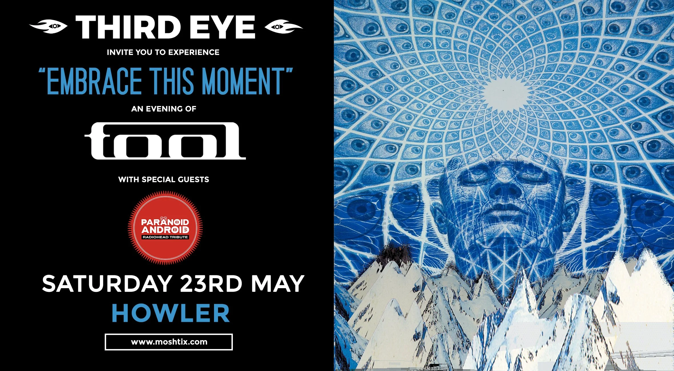 TOOL tribute act, "THIRD EYE'' from Melbourne, Australia have been praised for not only the musical likeness of TOOL, but also for their re-creation of TOOL's live show. The band incorporates breathtaking lighting and laser effects, Visual displays incorporating video clips and other TOOL related artwork, and musicianship unlike any other TOOL tribute.